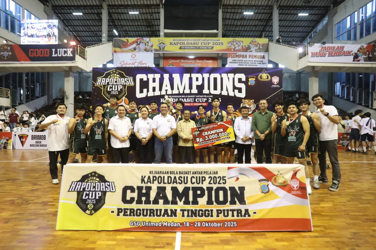 POSMETRO MEDAN,MEDAN – Suasana GOR Gedung Serba Guna Unimed, Selasa (28/10/2025), dipenuhi sorak sorai para supporter dan penonton yang antusias menyaksikan babak puncak Kapoldasu Cup 2025, turnamen bola basket bergengsi antar pelajar SMA/SMK dan mahasiswa se-Sumatera Utara. Kegiatan ini berlangsung meriah sekaligus menjadi momentum semangat kebersamaan dan sportivitas di Hari Sumpah Pemuda ke-97.