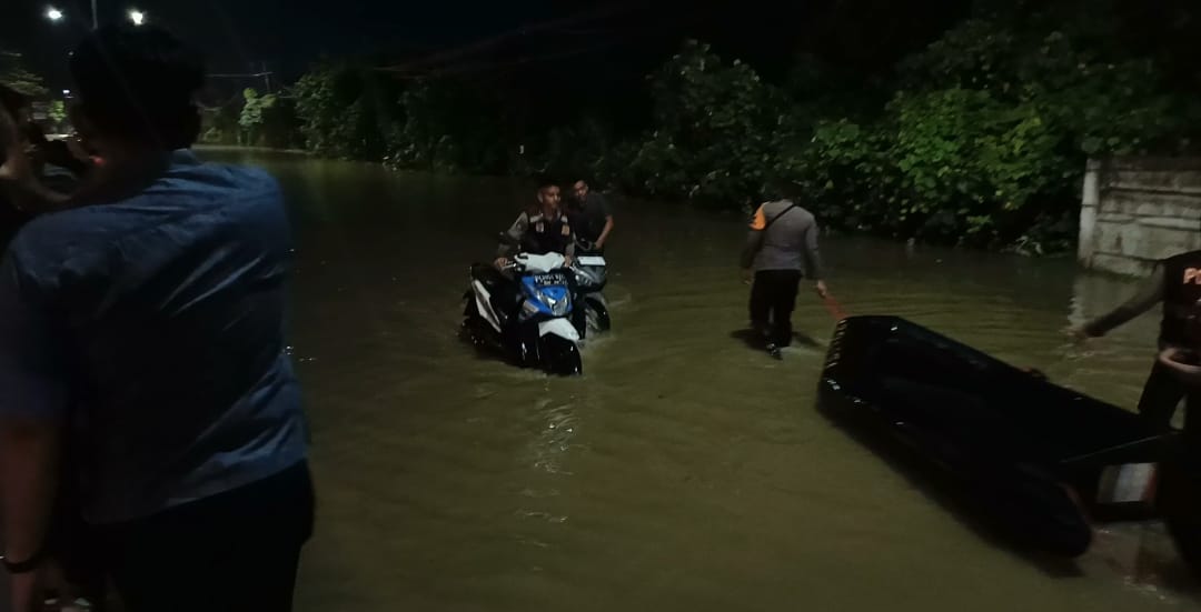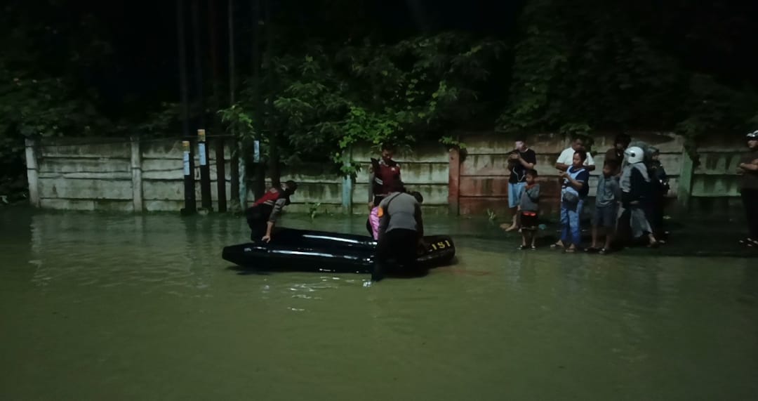 Pihak kepolisian bahkan mengerahkan perahu karet untuk membantu mobilitas warga di sekitar area yang terdampak banjir.