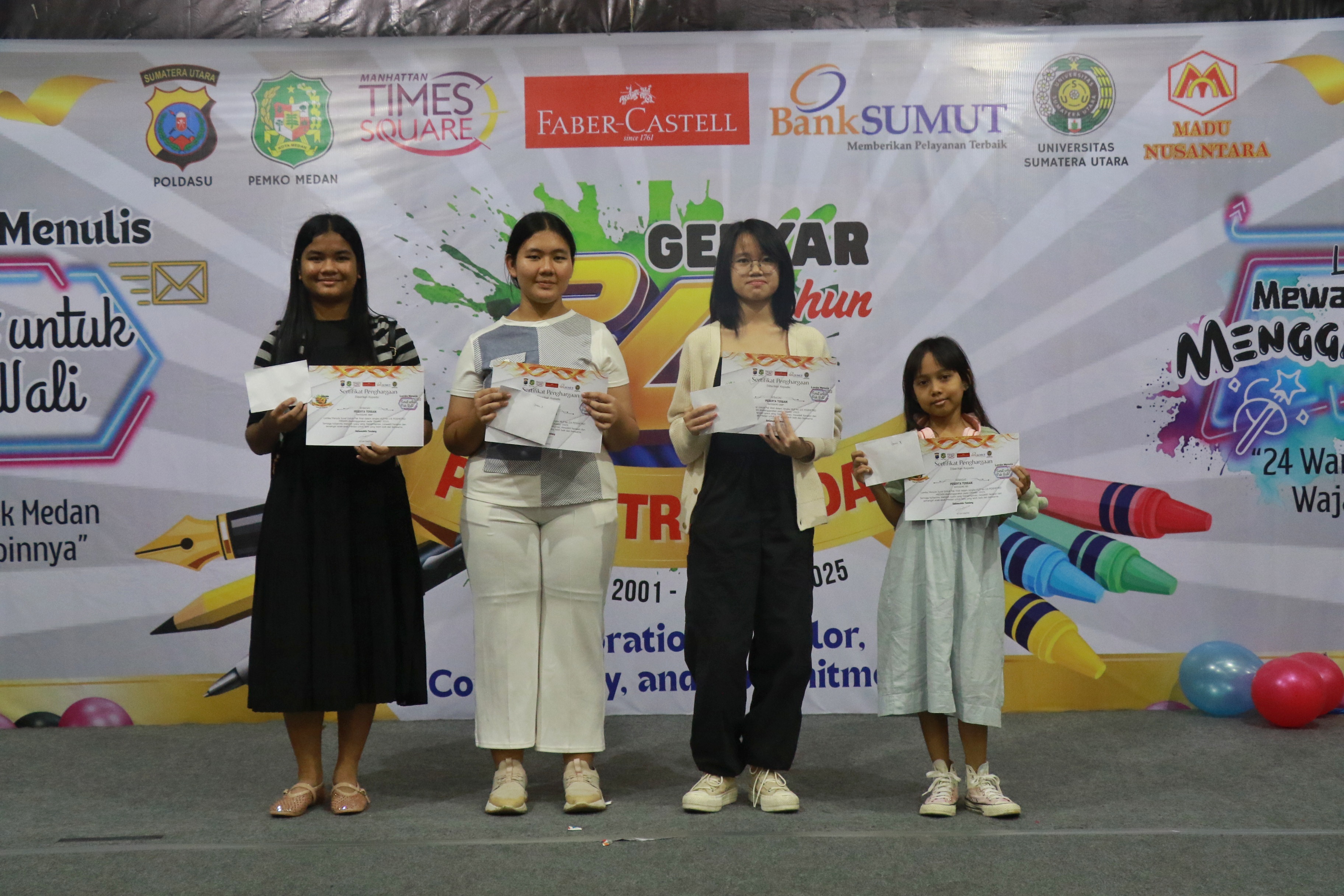 Dalam rangka Gebyar HUT ke-24 Posmetro Medan (Jawa Pos Group) yang mengusung tema, "A Celebration of Color, Community, and Commitment", ratusan peserta dari berbagai sekolah menorehkan kisah tentang warna, harapan, dan cinta untuk Kota Medan.