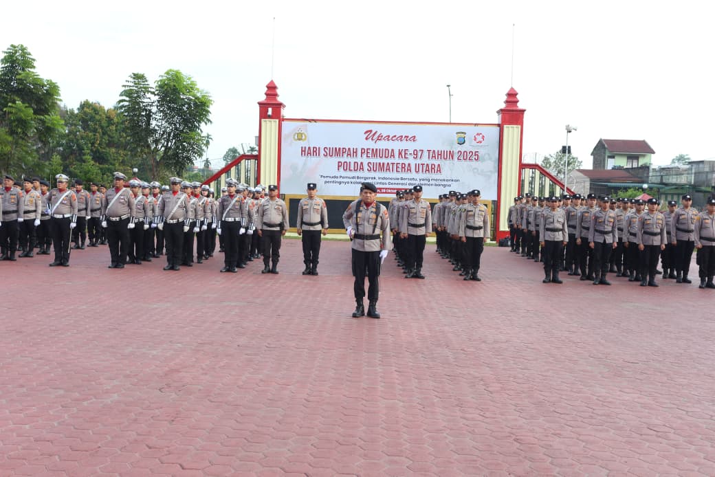 POSMETRO MEDAN,MEDAN – Dalam rangka memperingati Hari Sumpah Pemuda ke-97 Tahun 2025, Kepolisian Daerah Sumatera Utara (Polda Sumut) menggelar upacara yang berlangsung khidmat di Lapangan KS. Tubun, Mapolda Sumut, pada Selasa pagi (28/10/2025).