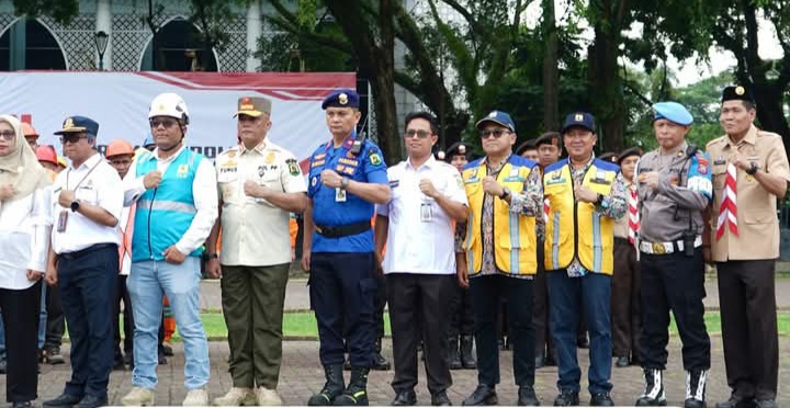 POSMETRO MEDAN,Medan -Plt. Kepala Dinas Sumber Daya Air, Bina Marga, Bina Konstruksi (SDABMBK) Kota Medan, Gibson Panjaitan, mendampingi Wali Kota Medan, Rico Tri Putra Bayu Waas menghadiri Apel Kesiapan Tanggap Darurat Bencana Hidrometeorologi yang digelar di wilayah Kota Medan, Rabu (5/11/2025). Apel tersebut diikuti oleh berbagai unsur pemerintah daerah, TNI, Polri, BPBD, relawan, serta sejumlah organisasi bantuan kemanusiaan.