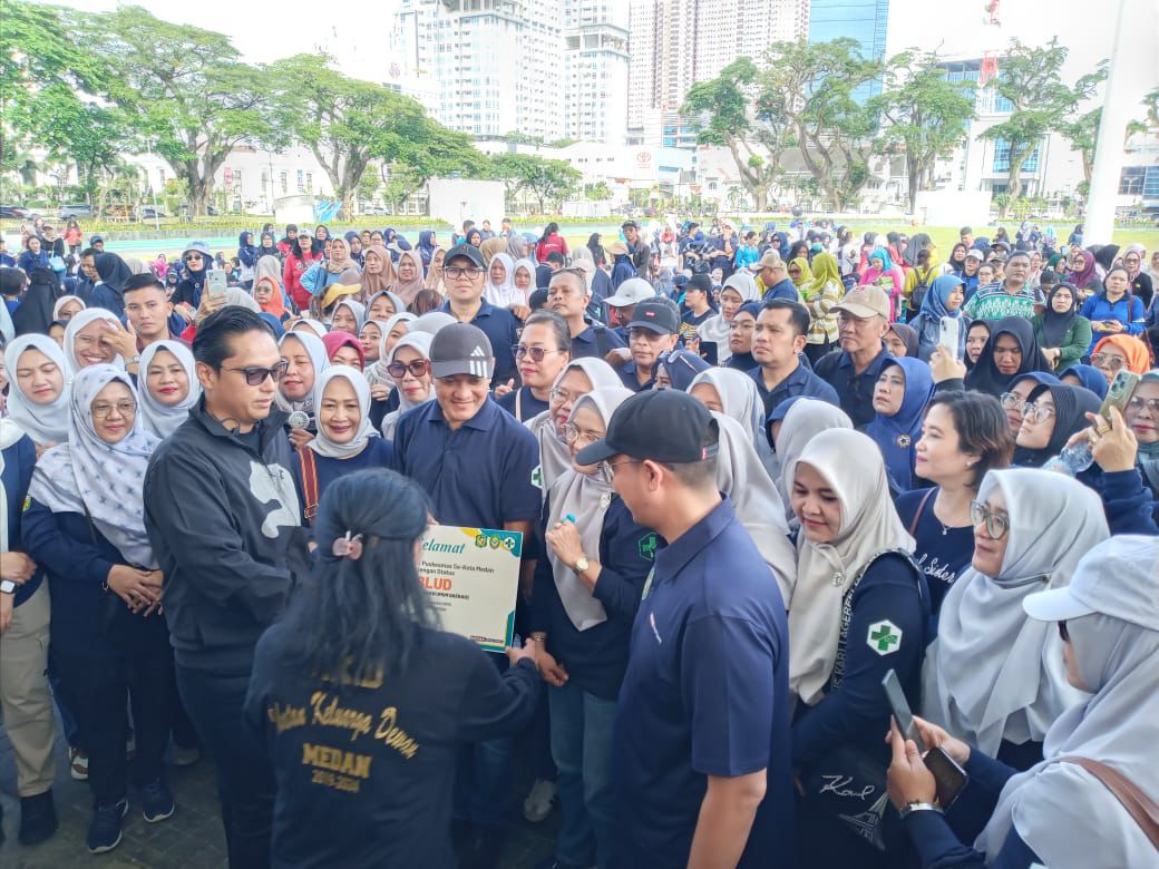 POSMETRO MEDAN,Medan- Dalam kegiatan Wali Kota Medan, Rico Waas kali sedikit berbeda. Rico Waas turun dari mobil langsung disambut emak emak yang antusias hadir dalam rangka Hari Kesehatan Nasional Ke 61, di Lapangan Merdeka Medan, Sabtu 8 November 2025.