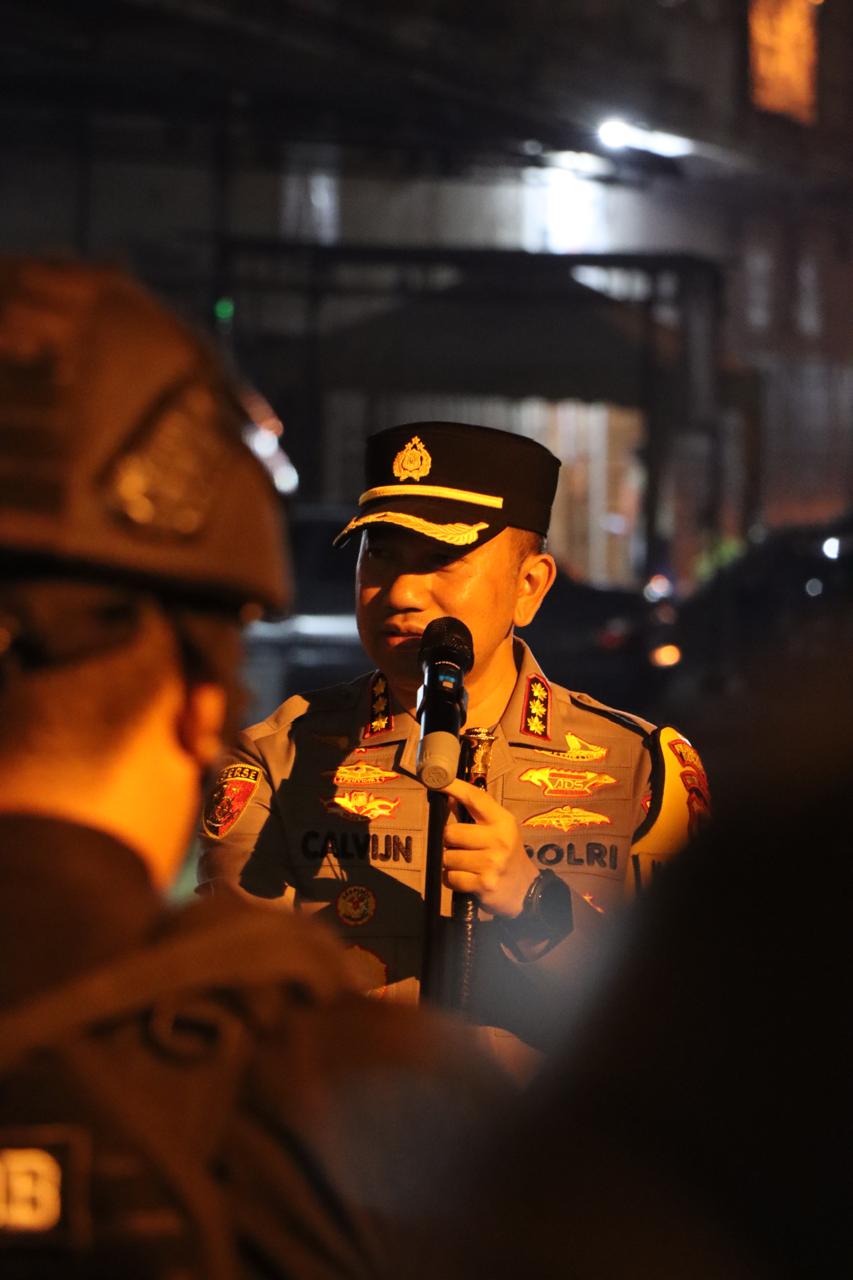 POSMETRO MEDAN, Medan - Kapolrestabes Medan, Kombes Pol Jean Calvijn Simanjuntak, memimpin apel Kegiatan Rutin Yang Ditingkatkan (KRYD) di kawasan Jalan Jenderal Besar A.H. Nasution, Pangkalan Masyhur, Medan Johor, Sabtu (20/12/2025).