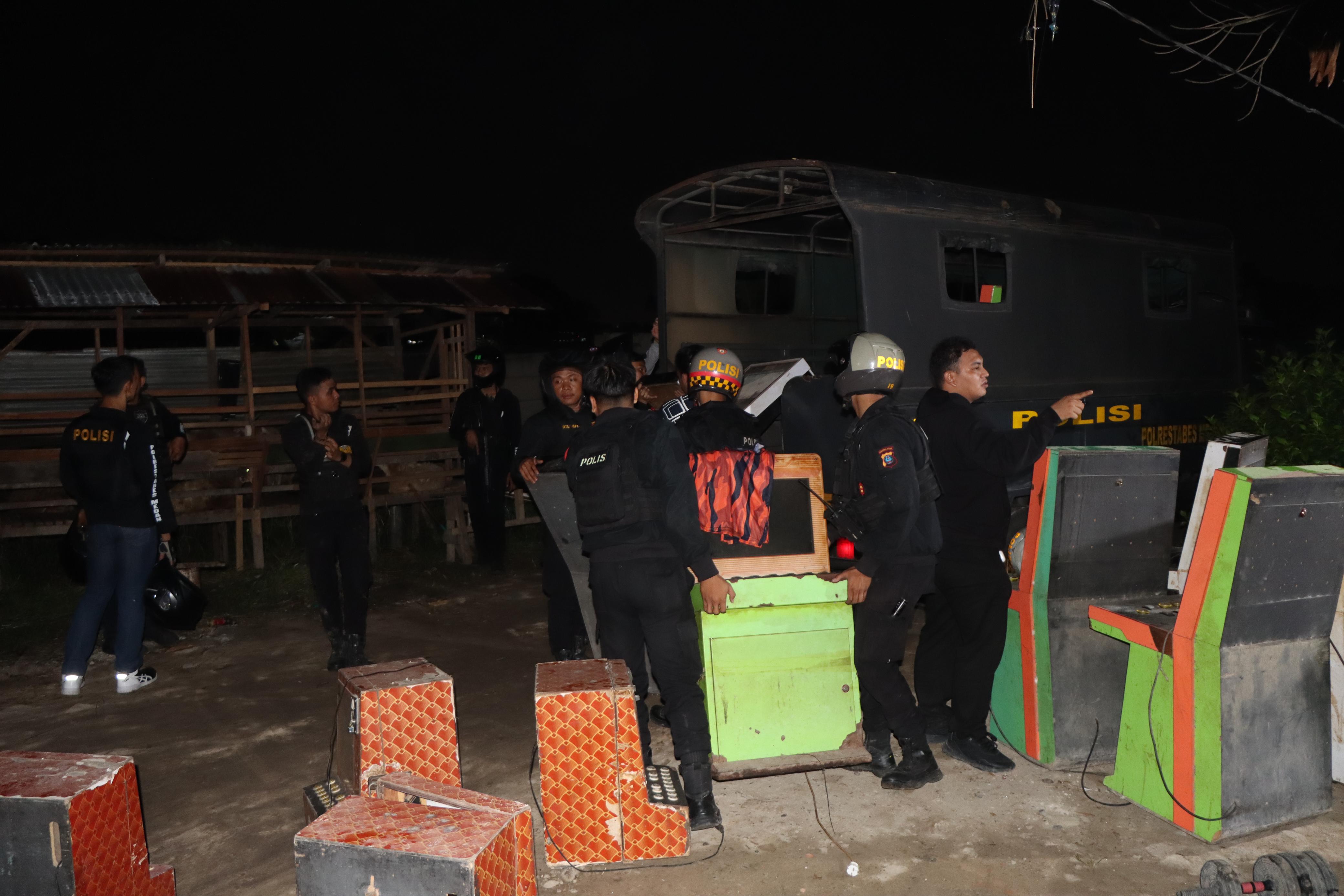Petugas menyita sejumlah paket sabu, plastik klip kosong, alat isap (bong), serta mancis serta perjudian, pPolisi turut mengamankan 26 unit mesin judi jenis dingdong dari lokasi penggerebekan.