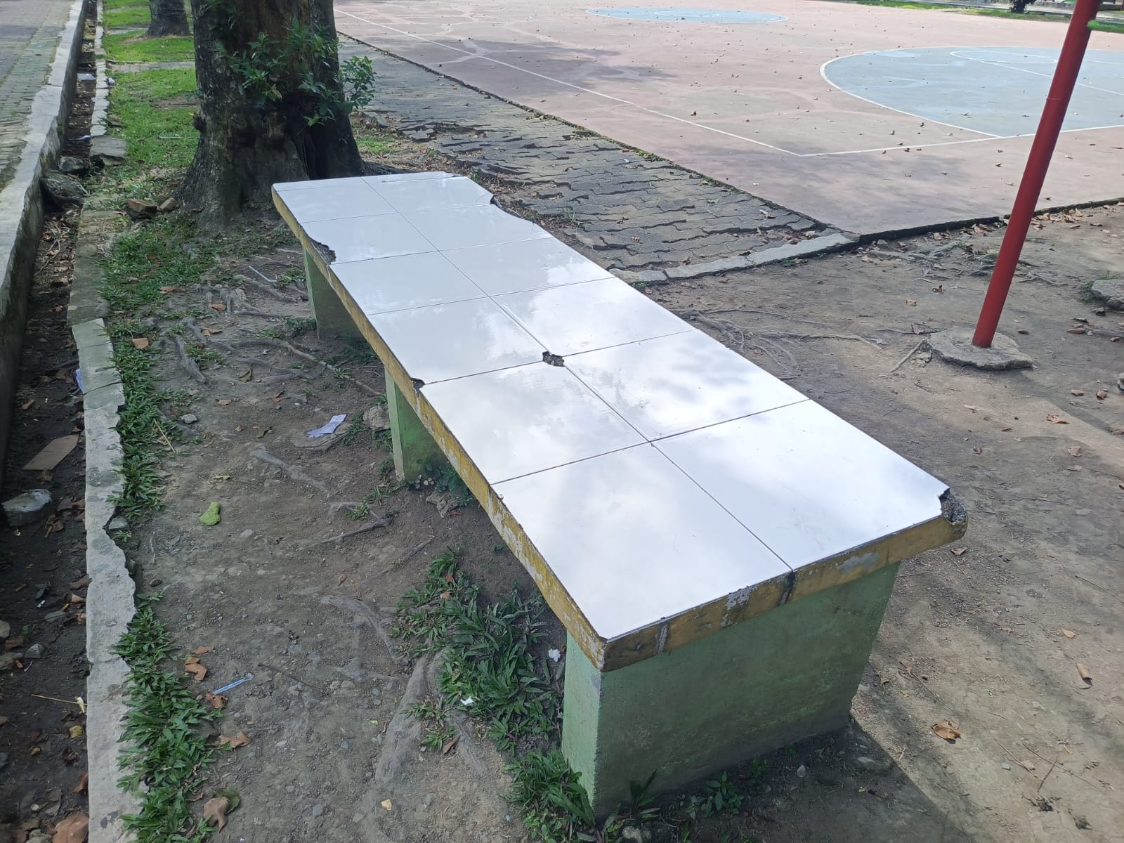 Berdasarkan pantauan di lokasi, kerusakan terjadi di hampir seluruh sudut taman. Kursi-kursi tempat duduk warga mulai hancur, sementara cat dinding yang dulunya cerah kini pudar dan dipenuhi coretan liar.