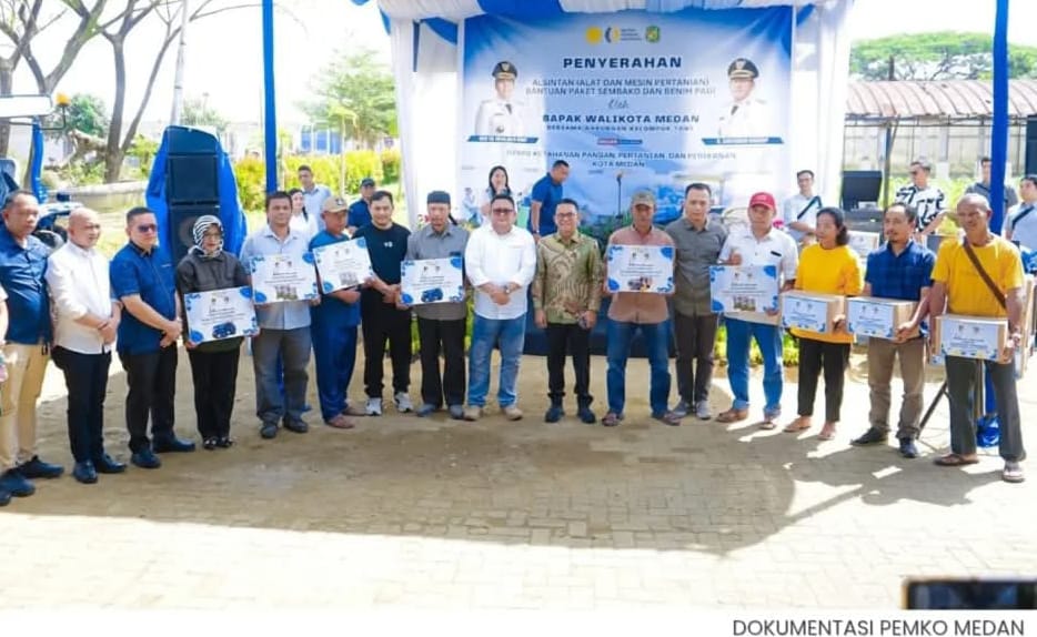 Bantuan tersebut diserahkan langsung oleh Wakil Wali Kota Medan, H. Zakiyuddin Harahap kepada kelompok tani yang ada di Kota Medan, bertempat di halaman Kantor UPT. BPPKP Dinas Ketahanan Pangan, Pertanian, dan Perikanan (DKP3) Kota Medan, Jalan Kramat Indah, Sabtu (31/1/2026).