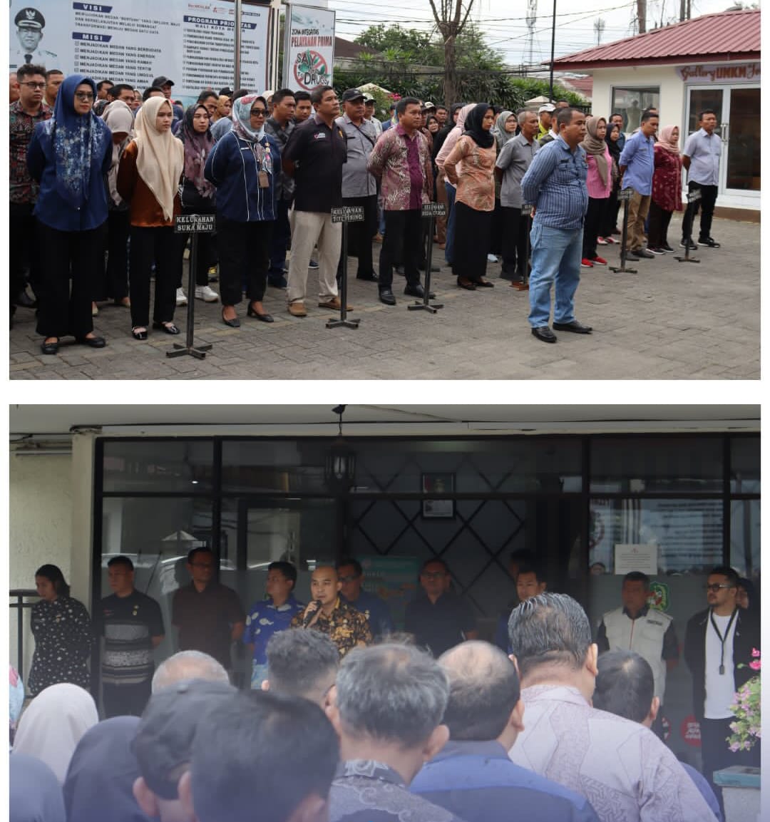 Posmetro Medan, Medan Kecamatan Medan Tuntungan menggelar apel pagi gabungan di halaman kantor camat, Jumat (27/2/2026). Apel dipimpin Cam