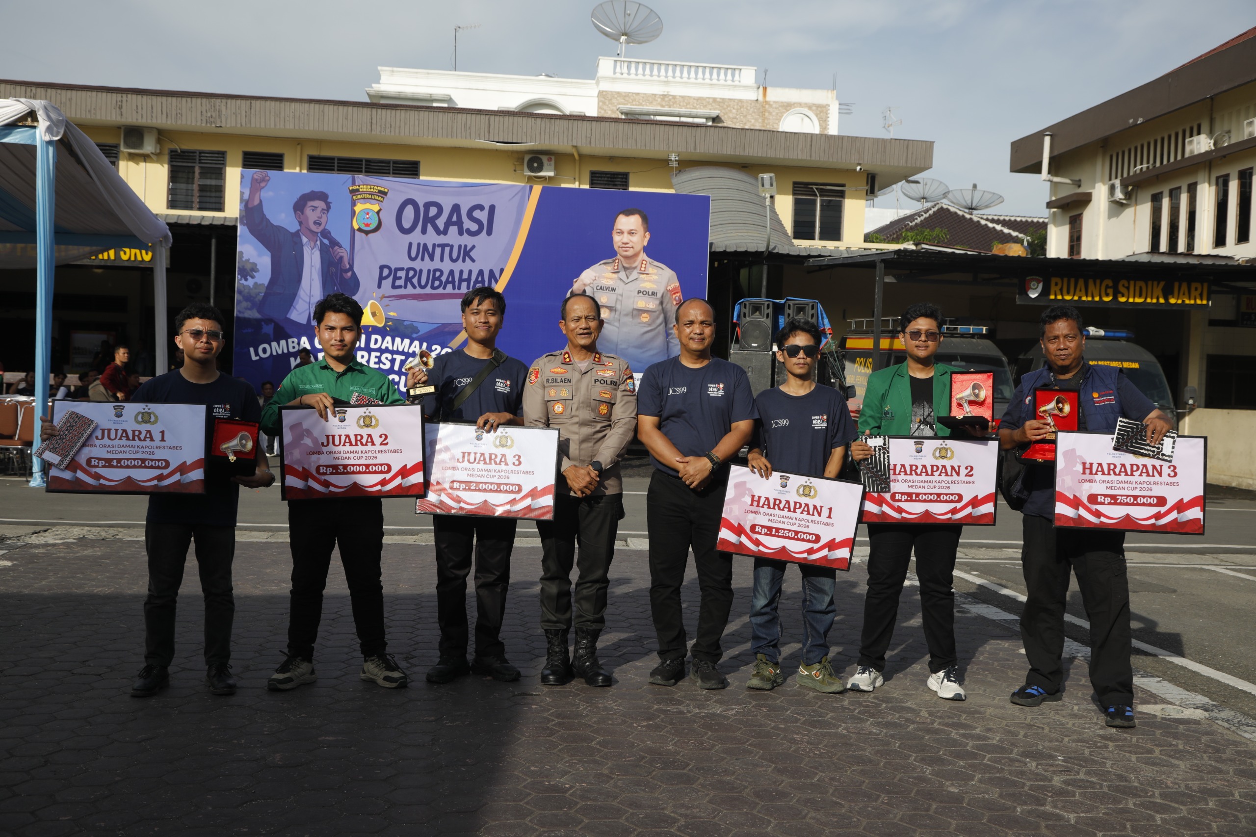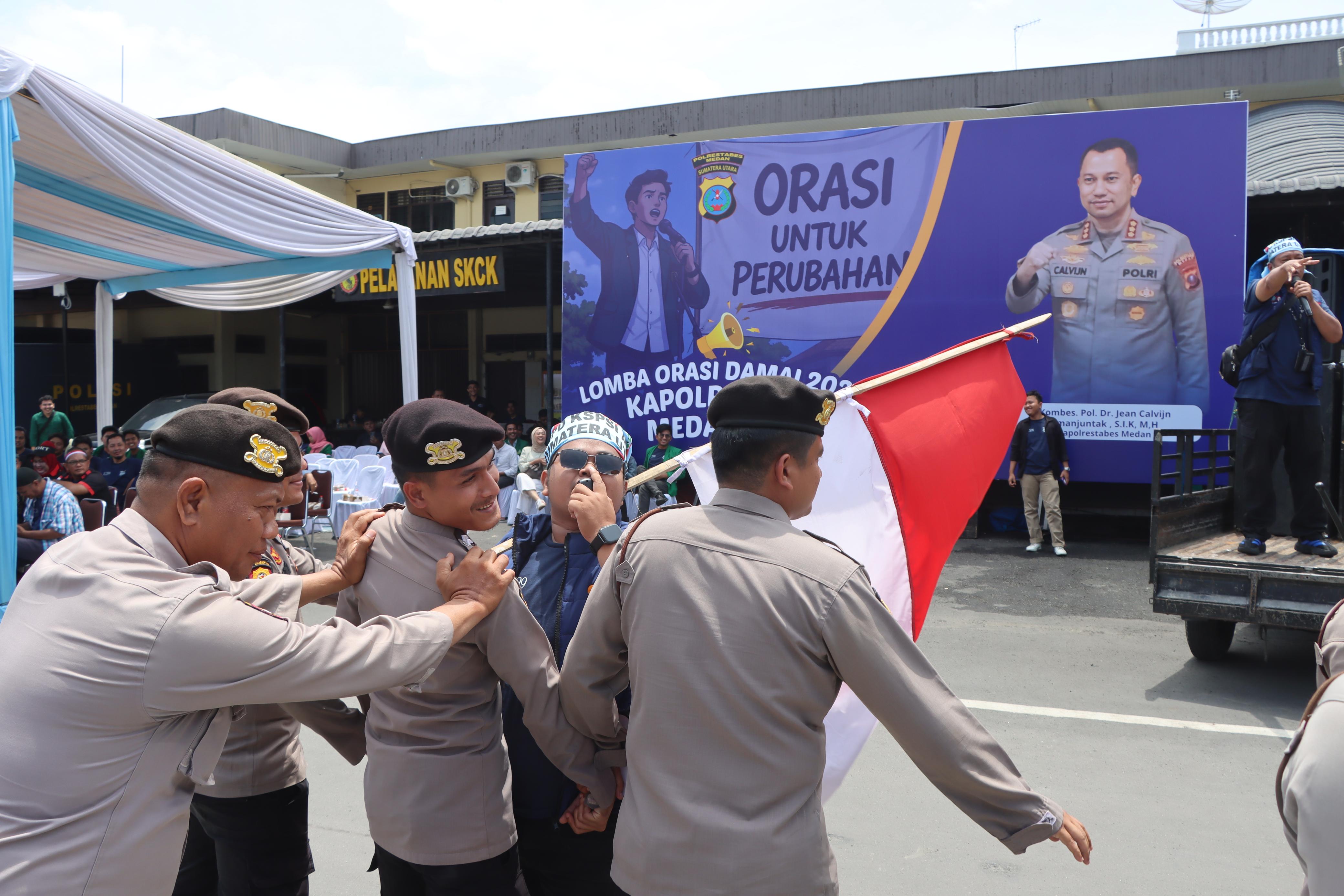 POSMETRO MEDAN-Polrestabes Medan sukses menggelar ajang Lomba Orasi Damai 2026 Kapolrestabes Medan Cup yang berlangsung di halaman Mapolrestabes Medan, Sabtu (11/4/2026). Kegiatan ini menjadi wadah bagi elemen masyarakat dan mahasiswa untuk menyuarakan aspirasi dengan cara yang cerdas, santun, dan konstruktif.