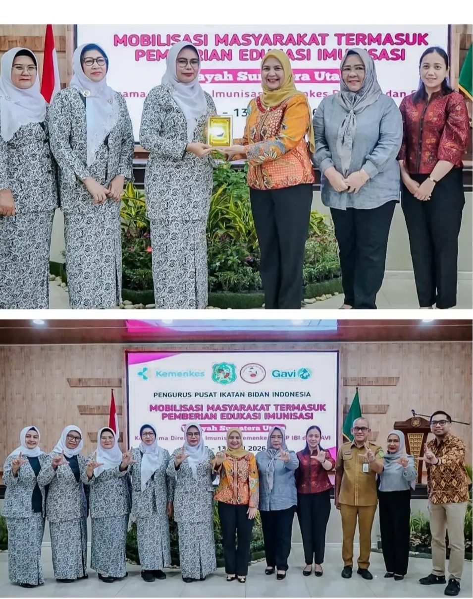 Pernyataan tersebut disampaikan dalam sambutan tertulis Airin yang dibacakan Ketua I Bidang Pembinaan Karakter Keluarga TP PKK Medan, Ismiralda Wiriya Alrahman, pada rapat koordinasi sektor swasta dalam mendukung pelaksanaan imunisasi di Gedung PKK Medan, Senin (13/4/2026). Kegiatan ini dihadiri Ketua Pengurus Pusat Ikatan Bidan Indonesia (IBI) Dr. Ade Jubaedah, Ketua Pengurus Daerah IBI Provinsi Sumatera Utara Betty Mangkuaji, Ketua Pengurus Cabang IBI Kota Medan Kurniawati Pohan, Plt Kepala Dinas Kesehatan Kota Medan Surya Syahputra Pulungan, unsur Forum Koordinasi Pimpinan Kecamatan Medan Petisah, serta pengurus PKK Kota Medan.