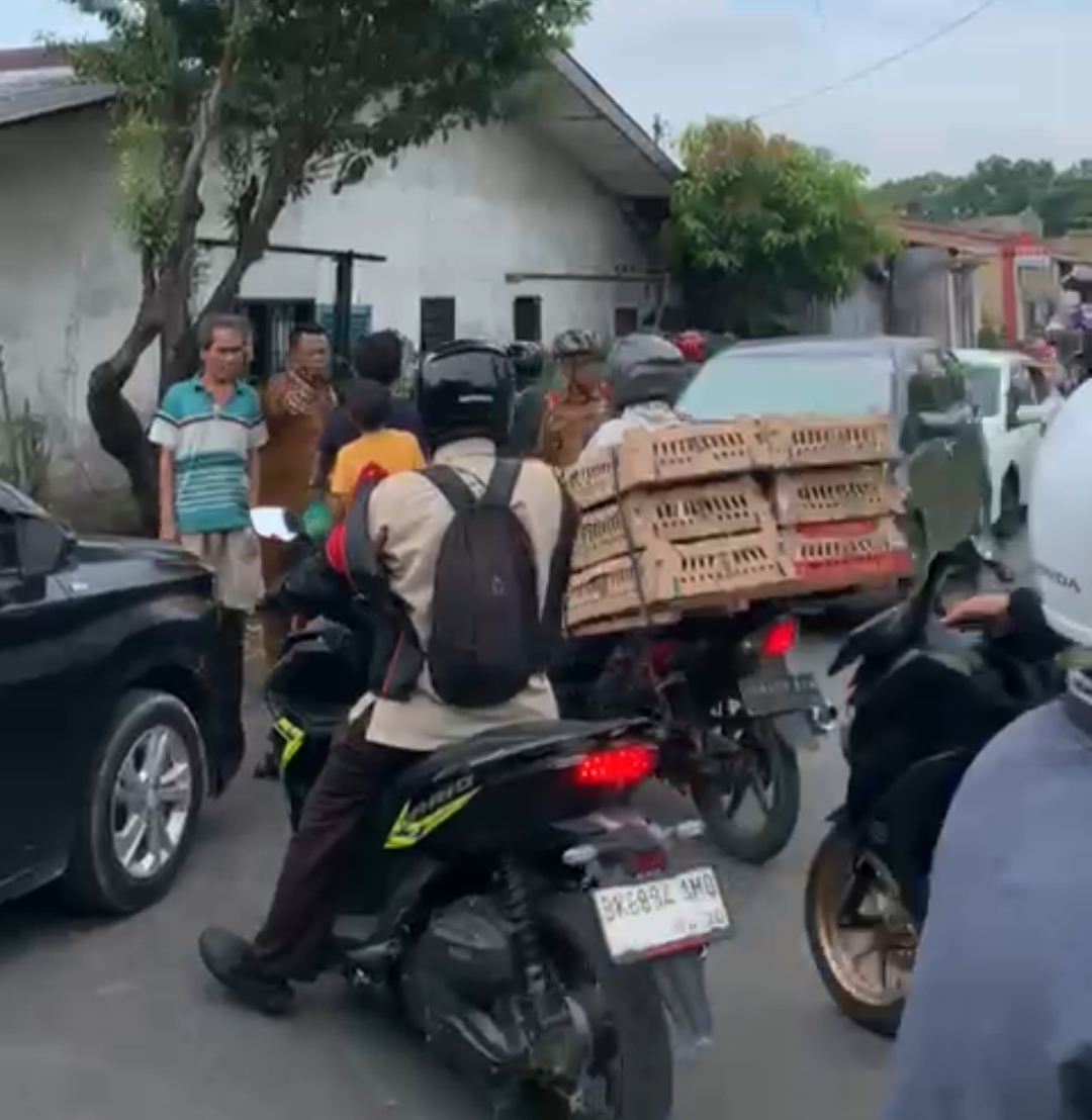 Lurah Beringin Irwansyah turun langsung tinjau jalan macet di seputaran Jalan Saudara tampak lurah bersama warga mengatur lalulintas agar jalan tidak macet.