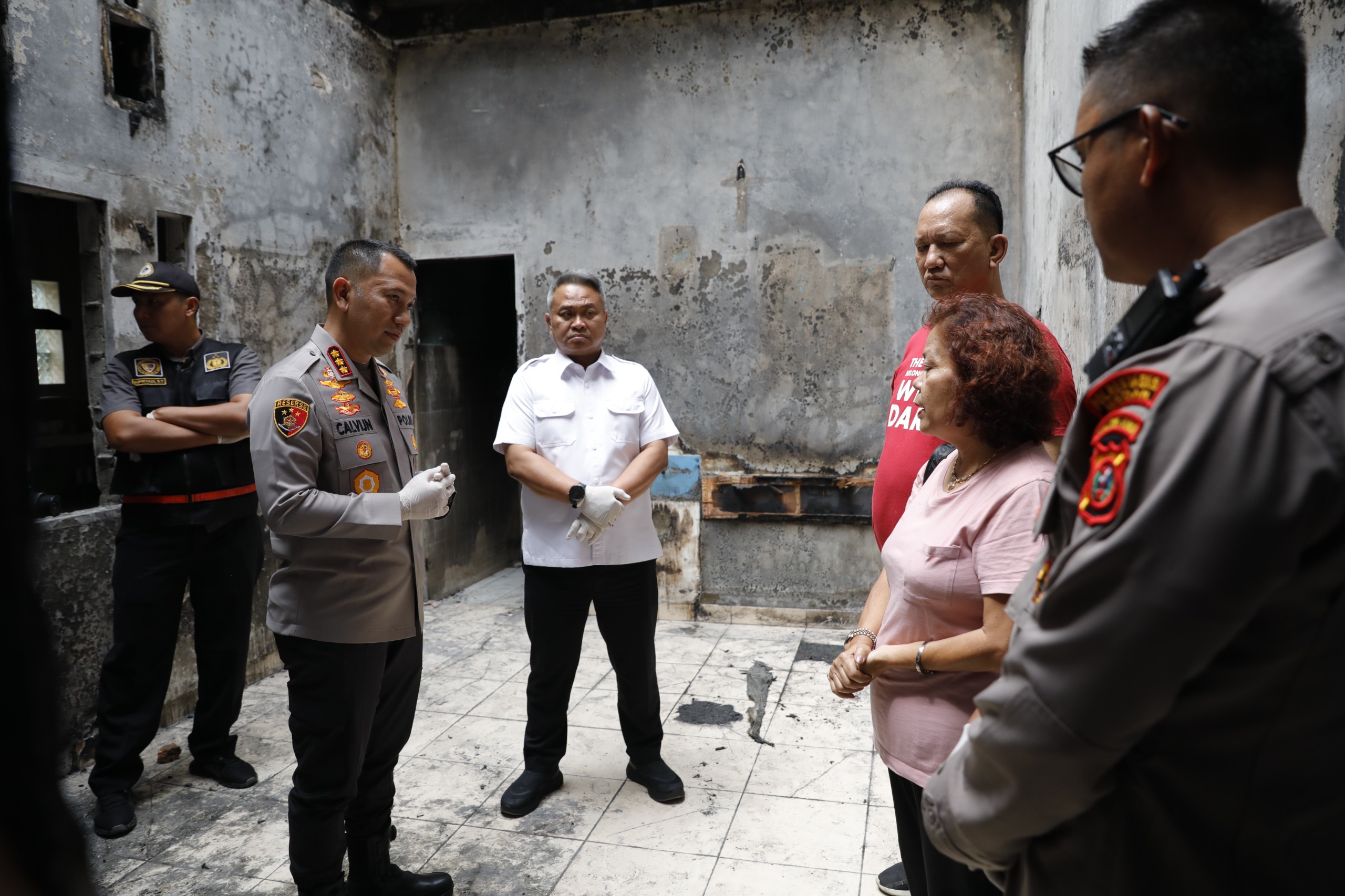 Direktur Reserse Kriminal Umum (Dirrreskrimum) Polda Sumut, Kombes Ricko Taruna Mauruh, dan Kapolrestabes Medan, Kombes Jean Calvijn Simanjuntak, terlihat meninjau langsung lokasi kejadian. Keduanya tampak memasuki rumah Khamozaro untuk memeriksa kondisi pasca-kebakaran.