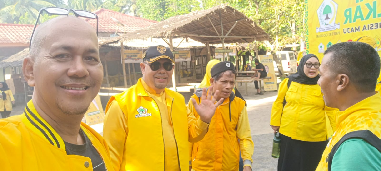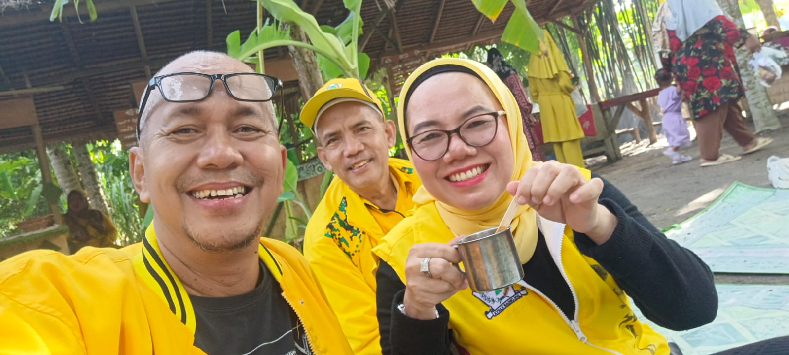 Bendahara DPD Partai GolkarSumut yang juga Ketua PW MDISumut, H. I.H Nasution bersama Wakil Ketua DPD Partai GolkarSumut yang juga Sekwil PW MDISumut, Ali Nafiah Harahap serta Ketua DPD Partai Golkar Deli Serdang, Hamdani Syahputra bersama para kader Partai Golkar lainnya terlihat asik menikmati jajanan tradisional di Pasar Kamu itu. (AG/REL)