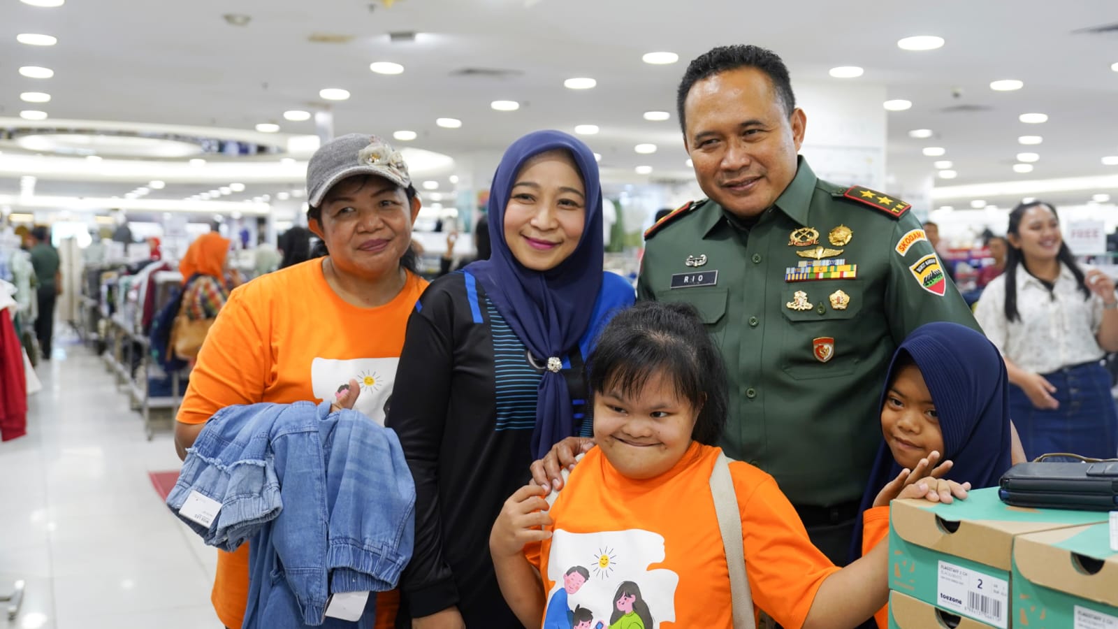 POSMETRO MEDAN,Medan – Suasana haru dan bahagia menyelimuti Plaza Medan Fair, Selasa (28/10/2025). Pangdam I/Bukit Barisan Mayjen TNI Rio Firdianto bersama Ketua Persit KCK Daerah I/Bukit Barisan Ny. Galuh Rio Firdianto mengajak 50 anak istimewa — di antaranya penyandang disabilitas dan anak dengan down syndrome — untuk berbelanja serta makan bersama dalam kegiatan bertajuk "Nge-Mall Bareng Pangdam I/BB dan Ibu."