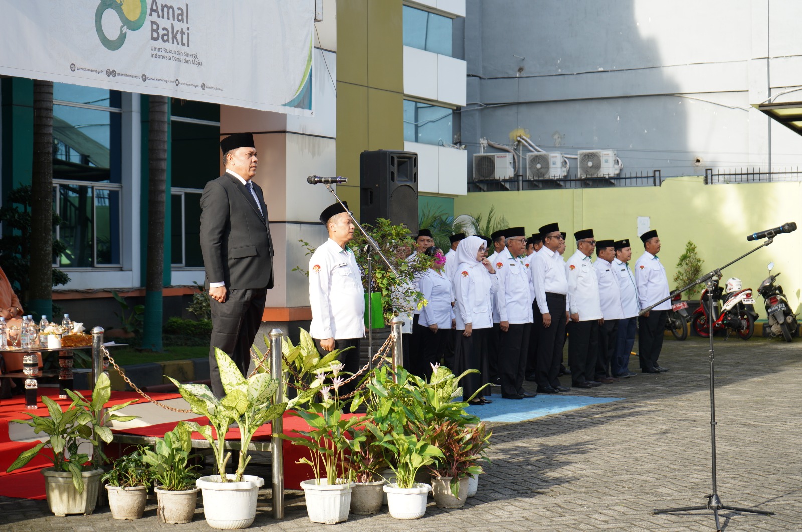 Kantor Wilayah Kementerian Agama Provinsi Sumatera Utara melaksanakan Upacara Peringatan HAB di Lapangan Utama Kanwil Kemenag Sumut, Sabtu ( 3/1/2026).