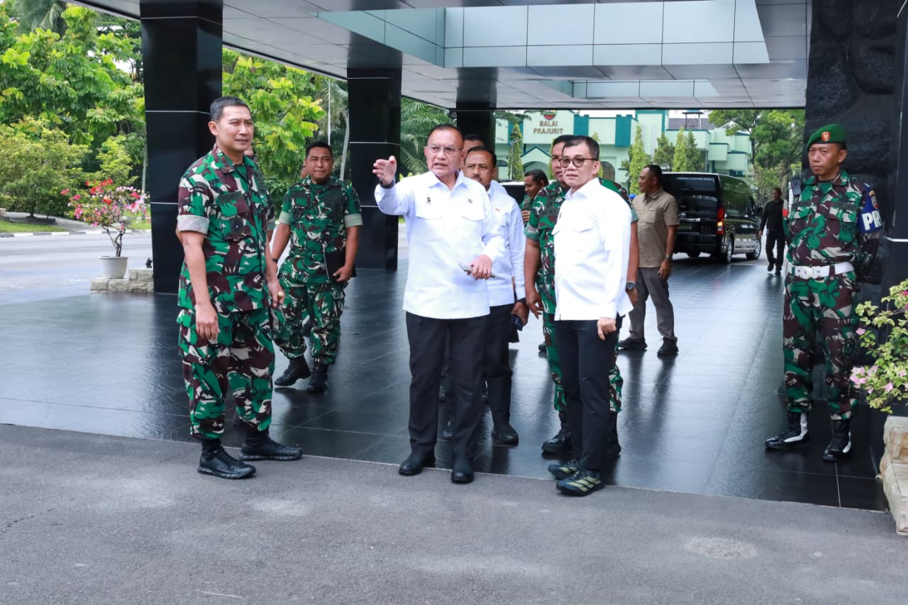 POSMETRO MEDAN- Wakil Menteri Koordinator Bidang Politik dan Keamanan Indonesia Lodewijk Freidrich Paulus beraudiensi dengan Pangdam I/Bukit Barisan Hendy Antariksa di Ruang Kerja Pangdam I/BB Lantai 2, Makodam I/Bukit Barisan, Selasa (24/2/2026), sebelum melanjutkan kunjungan kerja ke Aceh Utara.