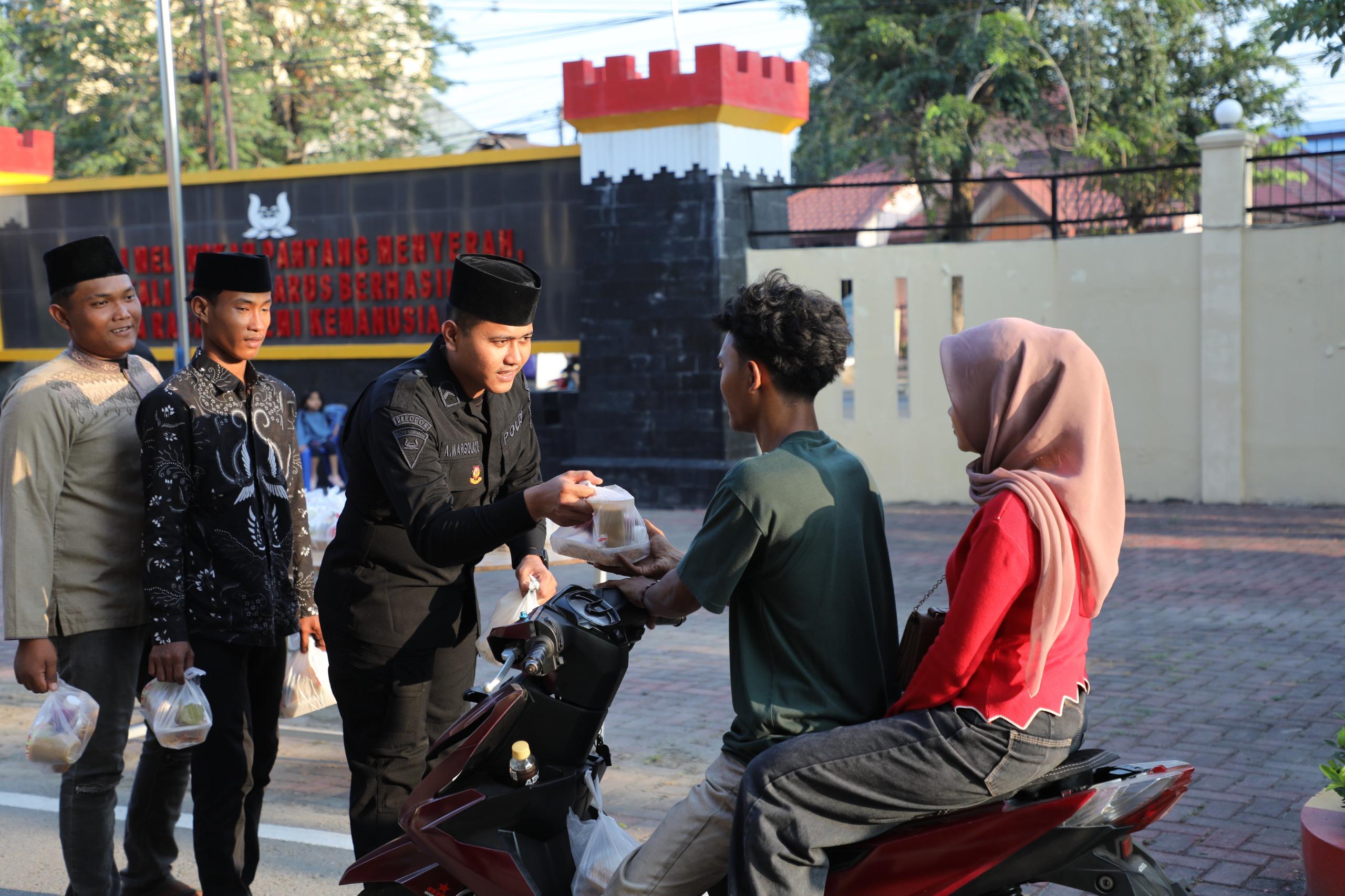Sejak sore hari, para personel Brimob terlihat berdiri di sepanjang jalan sekitar mako sambil menyapa masyarakat yang melintas. Dengan penuh kehangatan, mereka menyerahkan paket takjil kepada para pengendara yang masih berada di perjalanan agar dapat berbuka puasa tepat waktu.