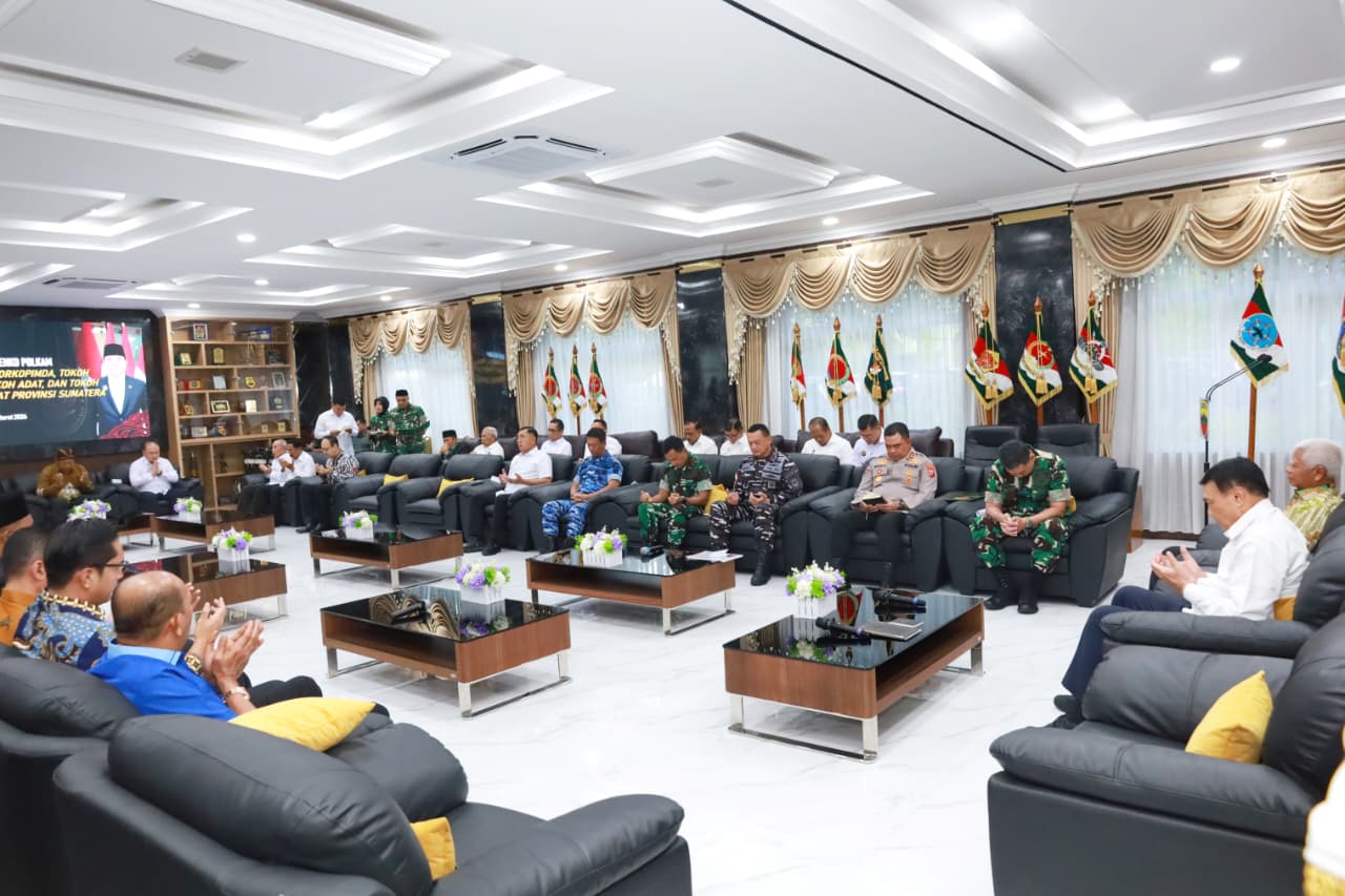 POSMETRO MEDAN- Menteri Koordinator Bidang Politik dan Keamanan (Menko Polkam) RI, Jenderal TNI (Purn) Djamari Chaniago, melaksanakan kunjungan kerja ke Provinsi Sumatera Utara dalam rangka silaturahmi bersama unsur Forkopimda, tokoh agama, tokoh adat, dan tokoh masyarakat Provinsi Sumatera Utara. Kegiatan tersebut berlangsung di Makodam I/Bukit Barisan, Minggu (15/3/2026).