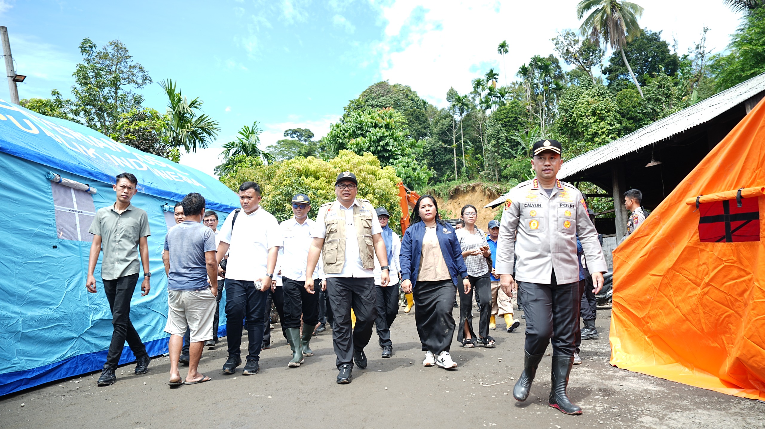 POSMETRO MEDAN, Sibolangit— Bupati Deli Serdang, dr H Asri Ludin Tambunan, turun langsung meninjau lokasi bencana longsor di Desa Sembahe, Kecamatan Sibolangit, Rabu (8/4/2026), bersama Wakil Bupati Lom Lom Suwondo SS dan unsur Forkopimda.