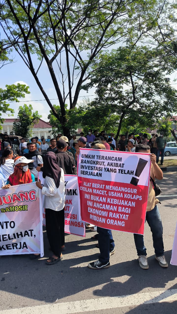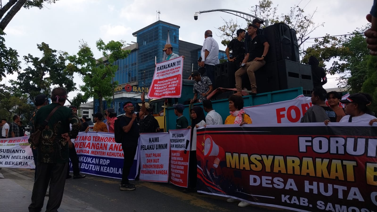Pimpinan aksi, Maju Butarbutar, menegaskan bahwa masyarakat kini menghadapi tekanan ekonomi serius akibat hilangnya sumber mata pencaharian. Penurunan pendapatan disebut telah berdampak luas hingga ke berbagai sektor kehidupan.